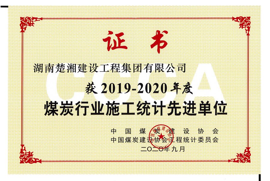 2019-2020年度煤炭行業(yè)施工統(tǒng)計(jì)先進(jìn)單位